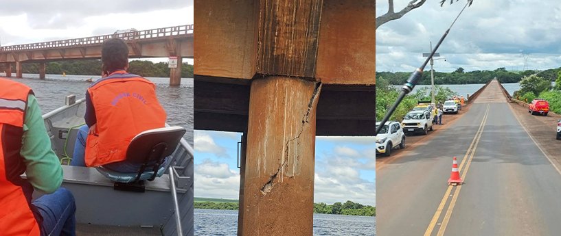 As autoridades alertam que o desrespeito ao limite de peso pode agravar os danos e colocar em risco a estabilidade da ponte.